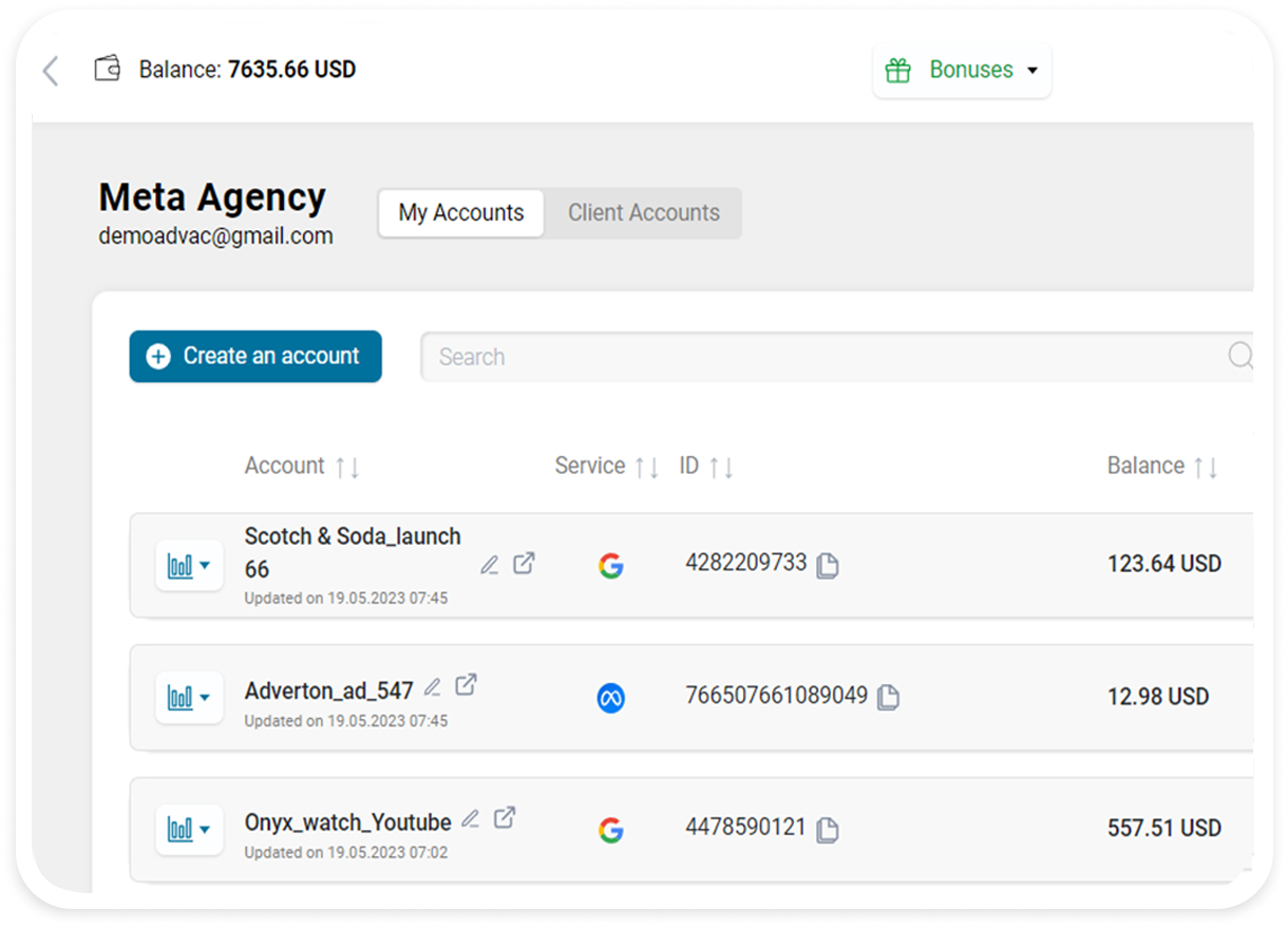 No, we do not take deposits.To get started, you just need to add budget, which will then be credited to your balance in our system or instantly to the accounts provided to you.